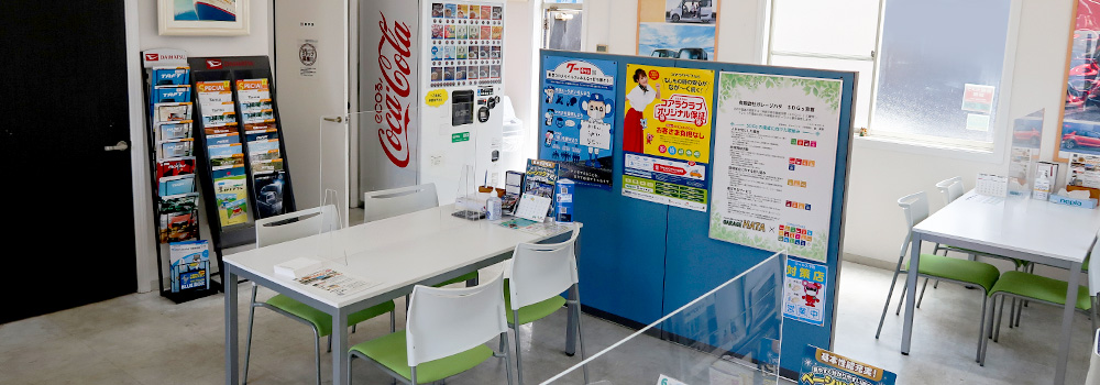 車を選ぶ購入するときは誰でも緊張すると思います。ガレージHATAではお客様にリラックスして頂き安心して車を選んで頂ける様に白く清潔感のある商談スペースをご用意しています。